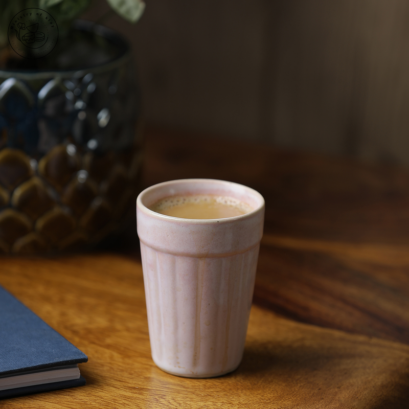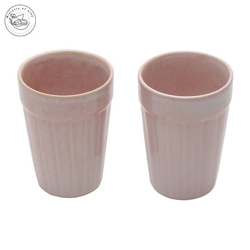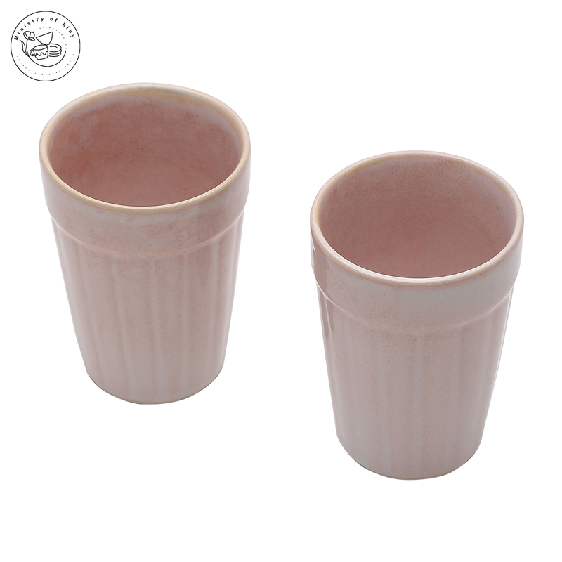 Ministry Of Klay Ceramic Cutting Chai Glasses / Microwave Safe, Set of 2, 100ml each, (Pink)